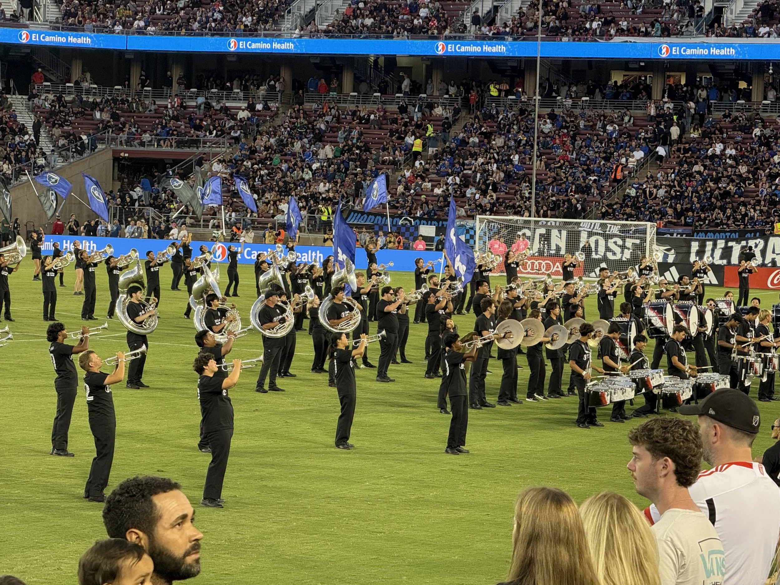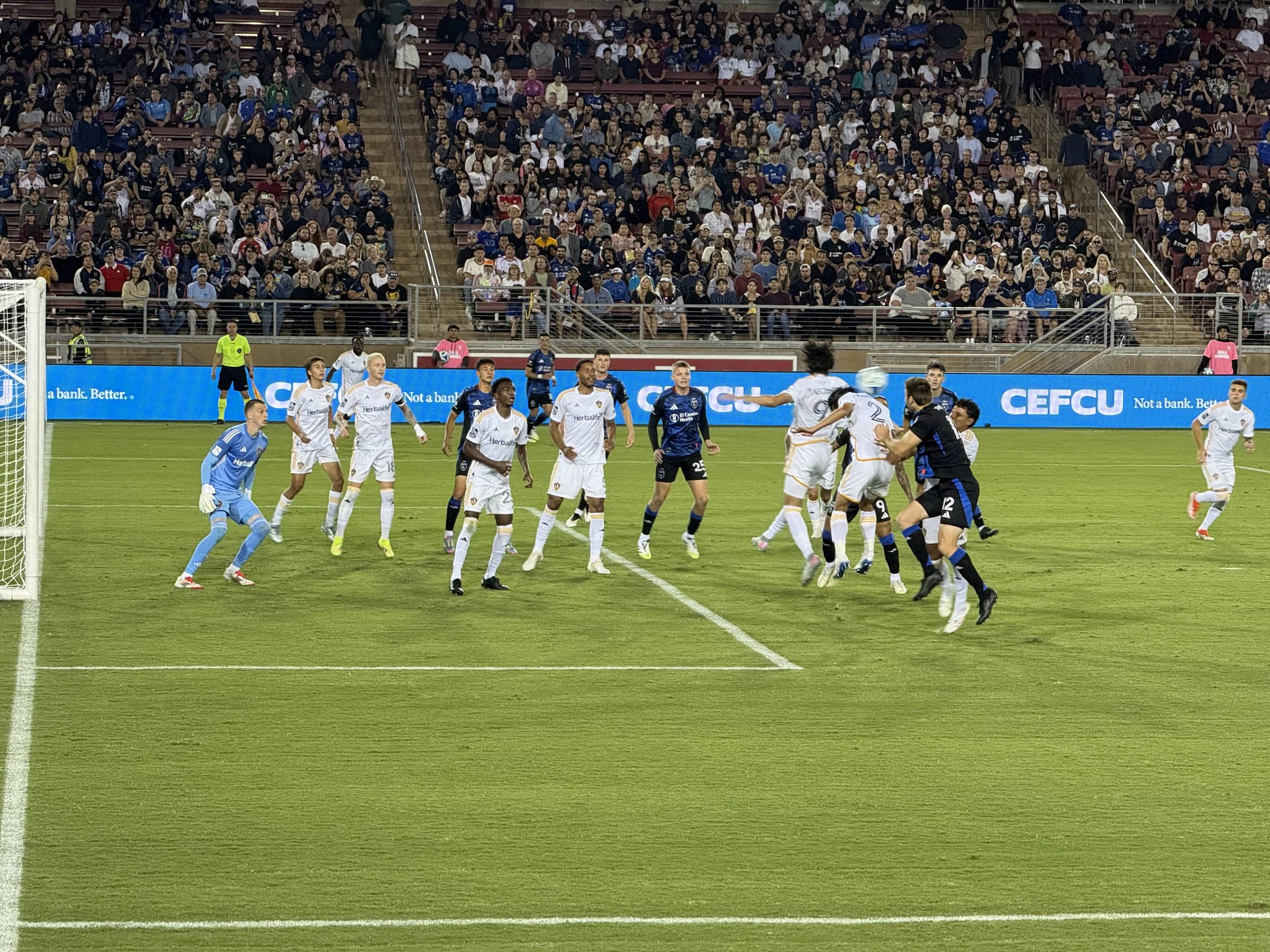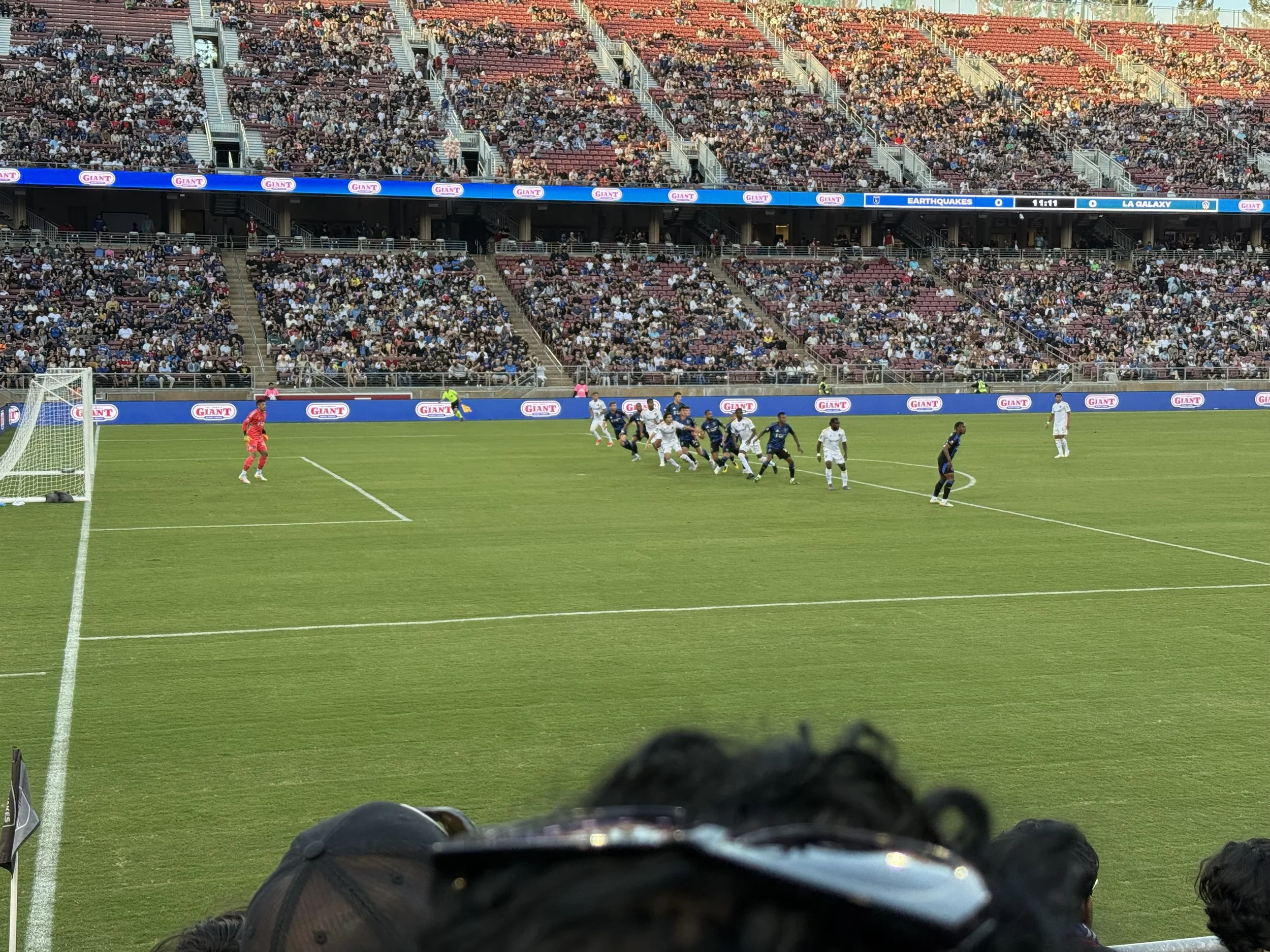 Josh: They started the evening with skydivers, multiple singers, and a whole lot of hype, which you know I love. Many other Quakes fans, as you might see on social, were disappointed by Stanford holding on to the NCAA tradition of no alcohol for sale inside the stadium. And I believe the beer garden ran out before kickoff. But hopefully that meant more people were in their seats to watch the Black & Blue face off for 96 minutes.