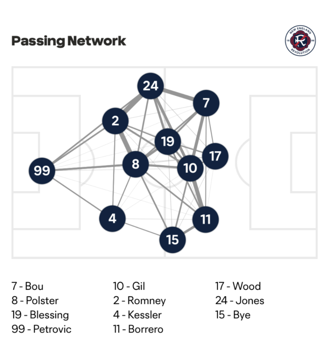 Matt: The Revs thoroughly dominated Montréal. The team FKA Impact tried to get a full game out of the recently injured Quioto, but had to sub him out due to the lingering injury in the 46’. The stats line is one-sided, New England dominating shots 19-9, shots on target 9-3, passes 569-406, and pass accuracy 84%-78%, but it’s worth noting that Montréal’s adjustments at the beginning of the second half, already down 2-0, didn't do the trick. The Revs were able to maintain a beautifully balanced passing network against a Montréal defense that was sitting on three yellow cards by the 67’, and most importantly for the progress of the New England team, DP striker Vrioni netted his first goal of the season in the 86’. Just to keep it interesting, Petroviç got the assist.